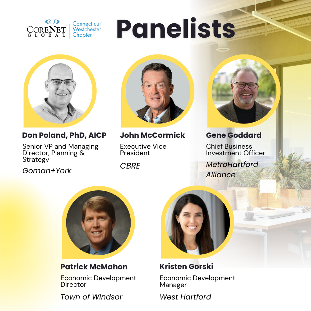 The presentation will explore the commercial office market in the Hartford Region and Connecticut. The presentation will be followed by a panel discussion around the future of the office market in Connecticut.