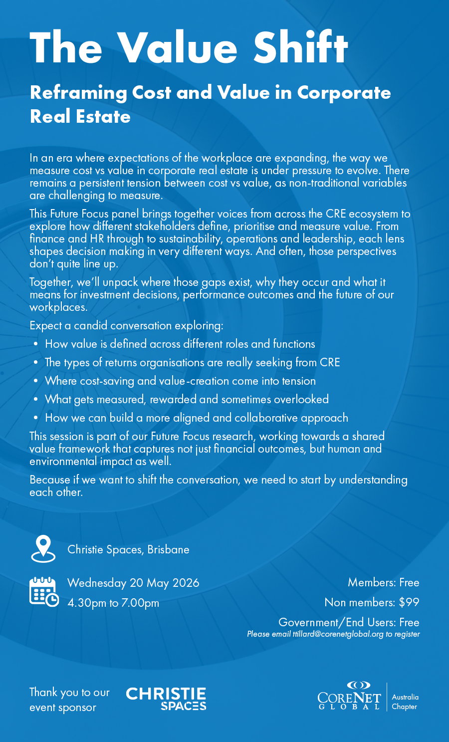 AU [BNE] The Value Shift - Reframing cost and value in corporate real estate [20 May 4.30pm]